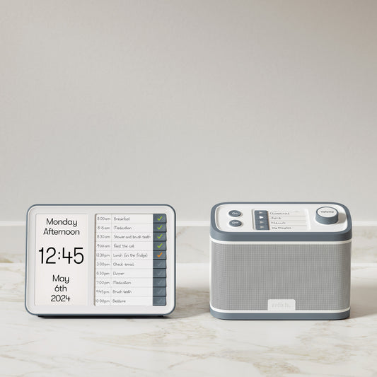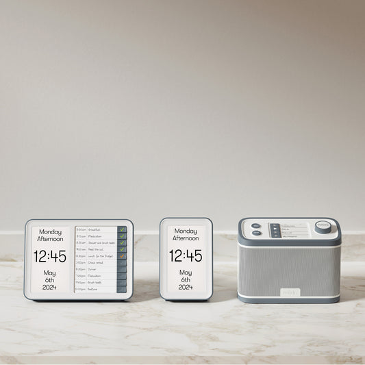 The Relish dementia radio is a specially designed radio that caters to the needs of people living with dementia. Some key features of our dementia radio include large buttons, audible feedback when buttons are touched, a volume dial that never reaches zero so that the user knows it's still switched on, and a hidden set up panel at the back to avoid confusion.