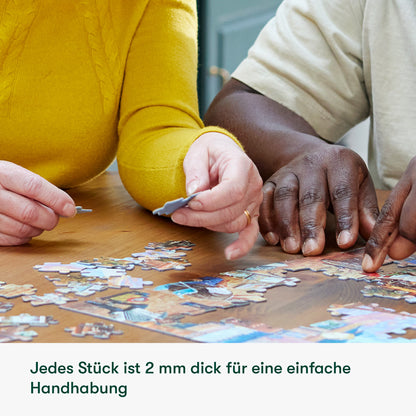 More recent puzzles in our range featuring people are more balanced in diversity. With our puzzles we focus mainly on landscapes, holidays, animals and nature so that these can be enjoyed by a wider audience. If there were any particular scenes you would like to see in the future, please do let us know at info@relish-life.com.