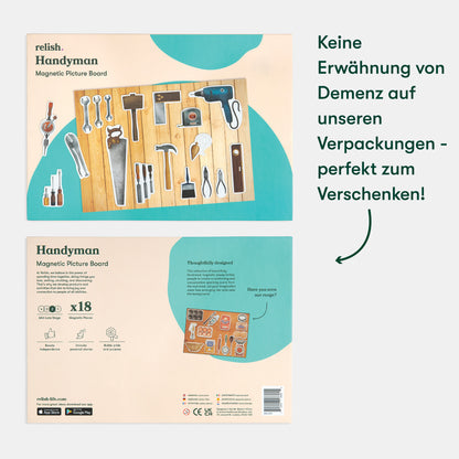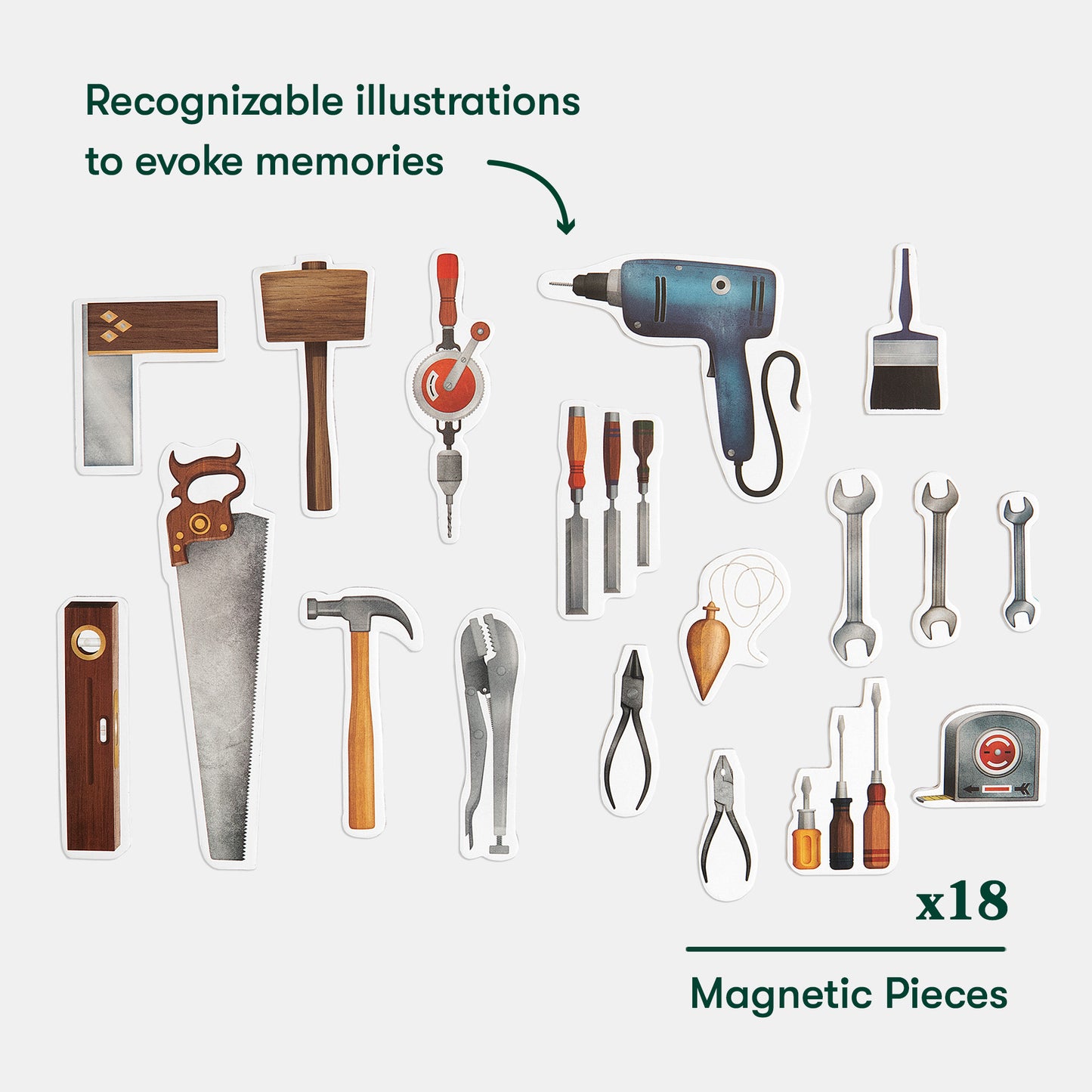 Magnetic picture board with tools, ideal for dementia activities, care home activities, and gifts for people with dementia.