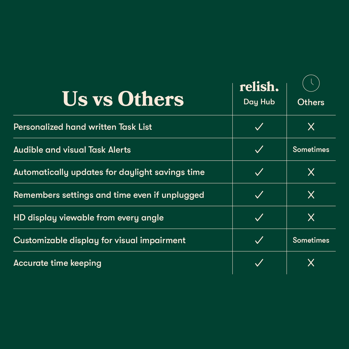 Pair with a Relish Day Connect™ and get Task Alerts in multiple rooms across your home. Can connect with or without wifi.