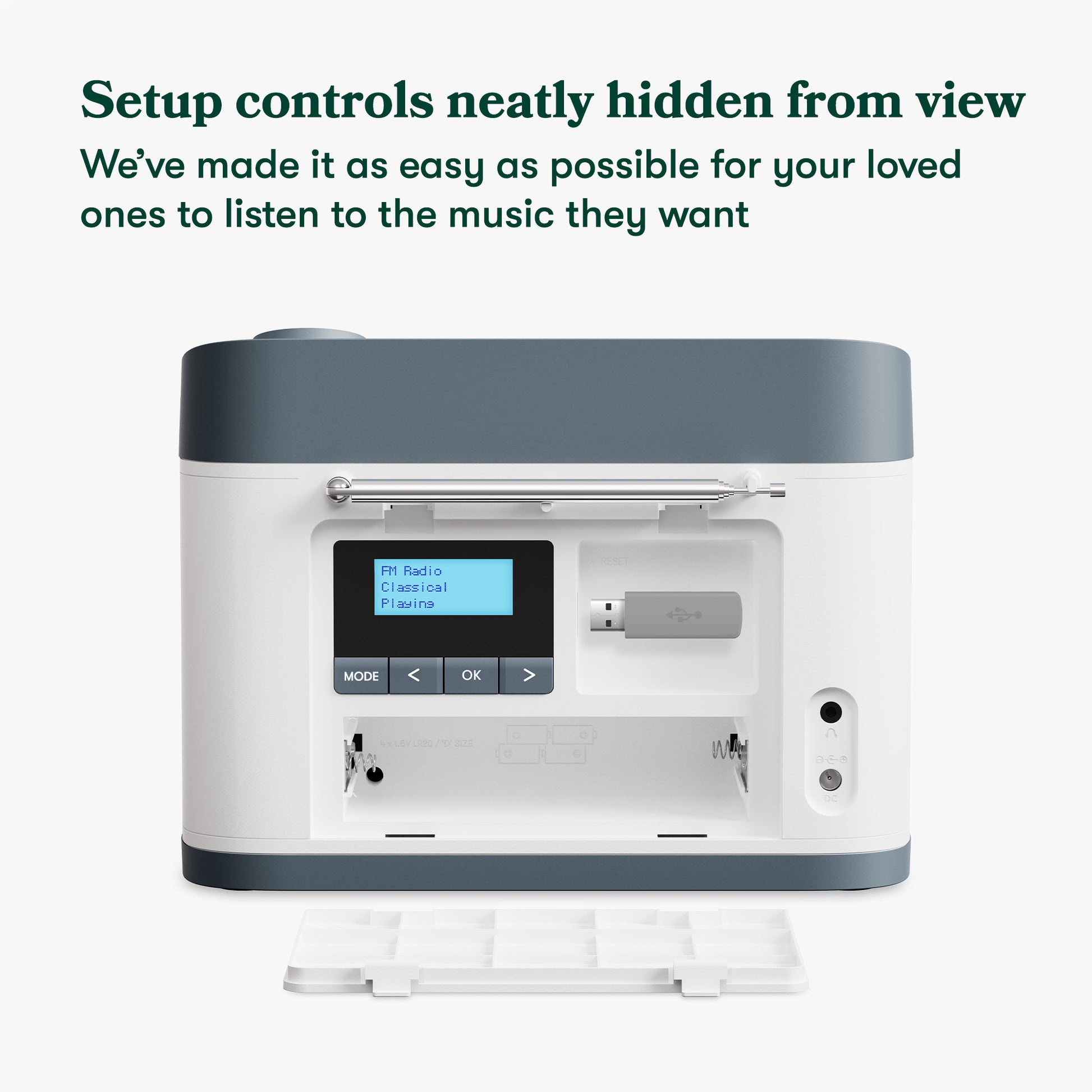 Dementia-friendly radio with simple controls, ideal for care home activities and gifts for people with Alzheimer's.|market_au_ca_dk_fi_fr_ie_it_pt_es_se_gb_us