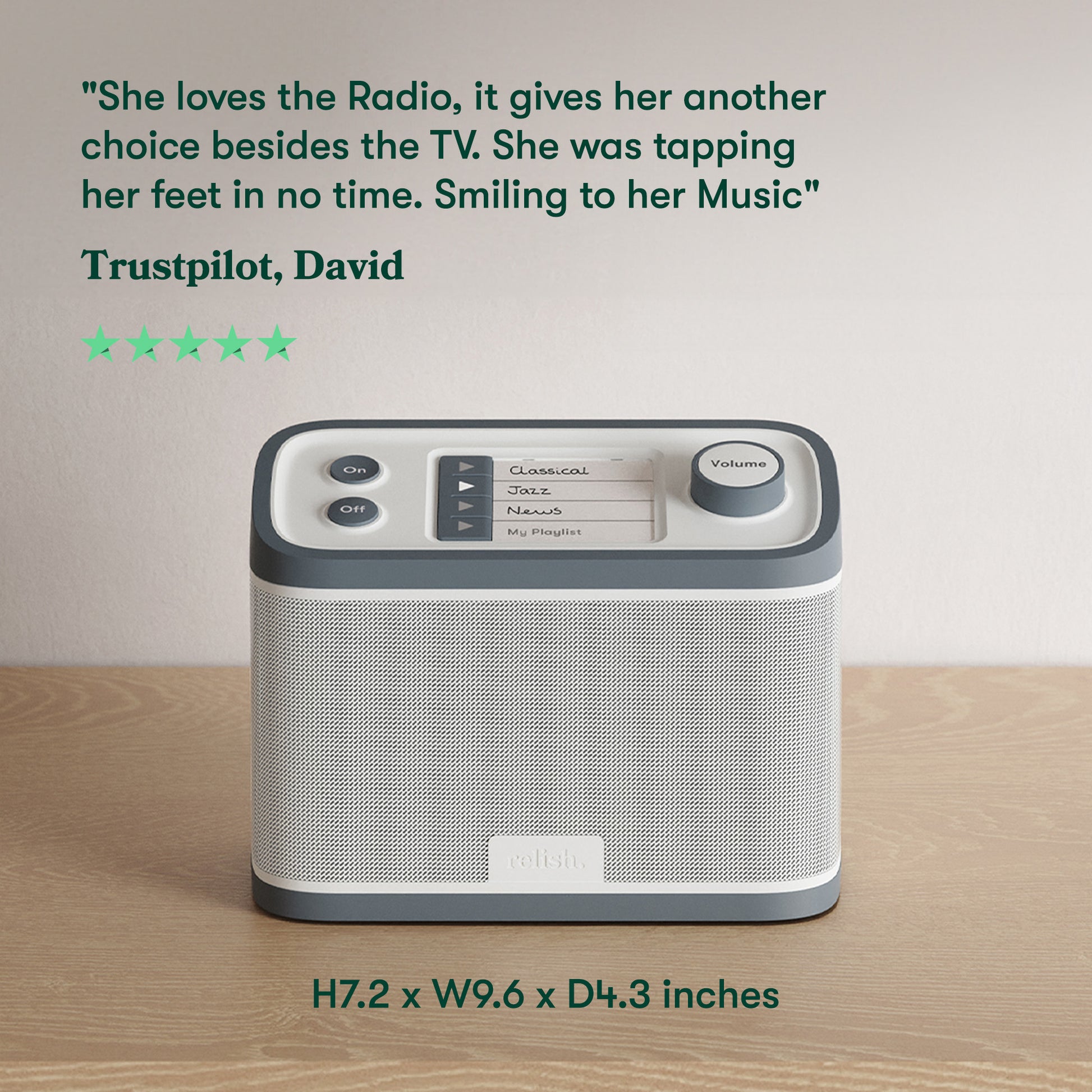 The Relish Radio is designed for listening to radio stations and music playlists using a USB stick. It’s not currently suitable for audiobooks.