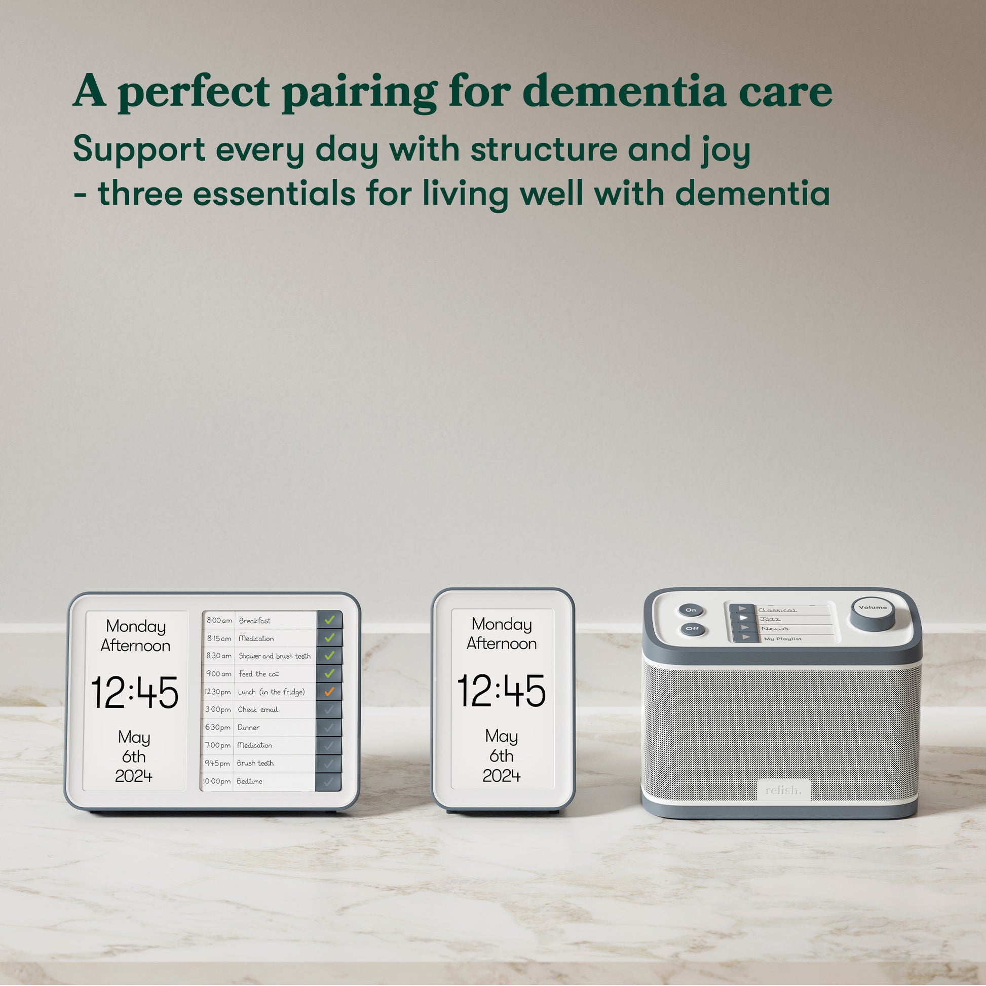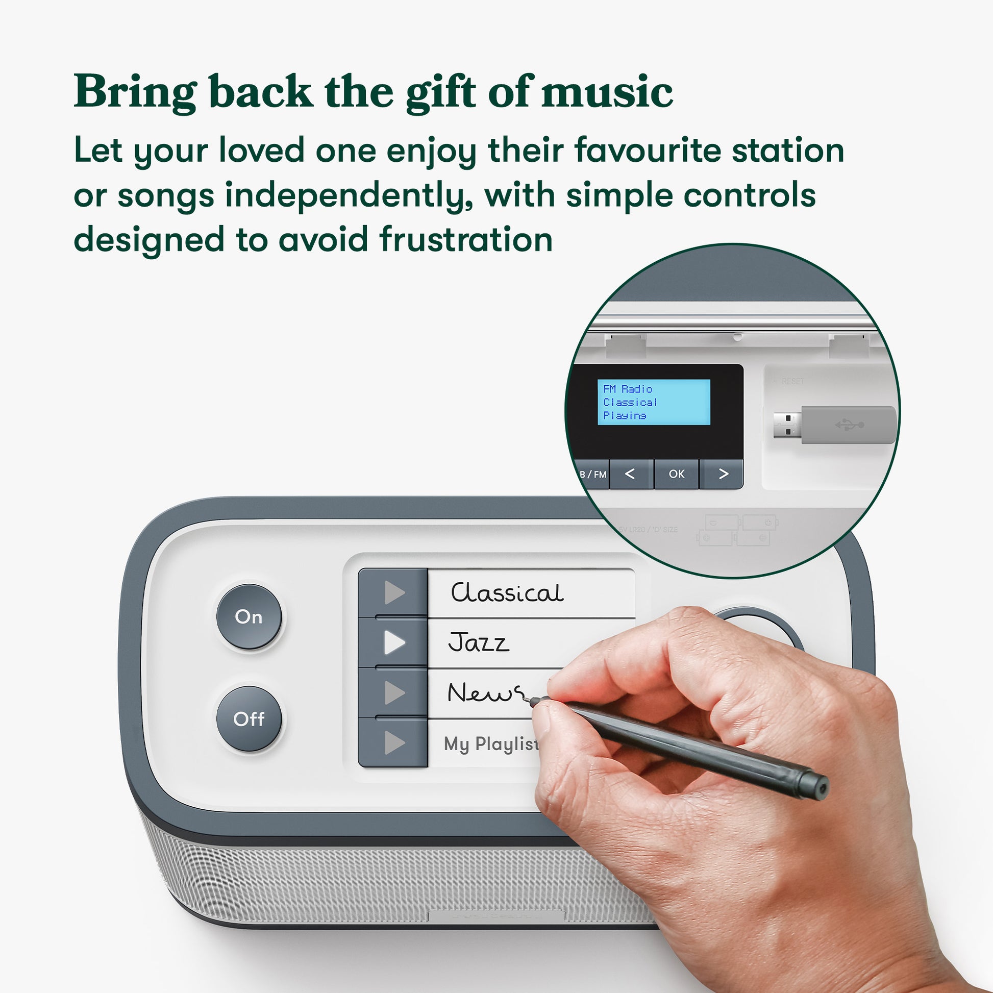 The pack includes our simplifed Radio & Music Player allows them to experience the power of music themselves, and our Day Hub which helps with their daily routine to live independently at home for longer.