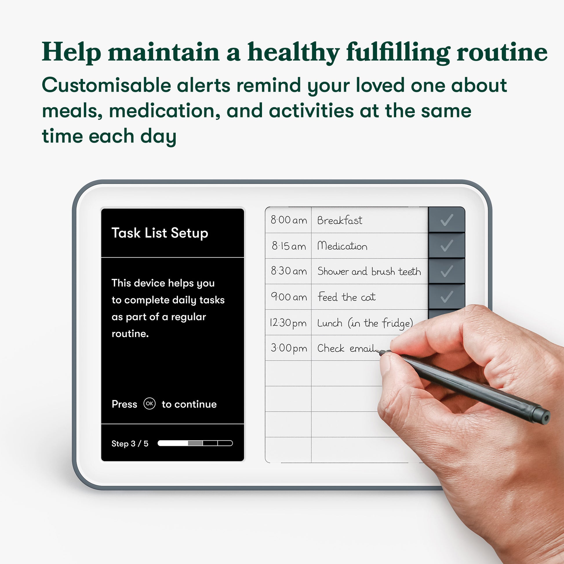 Customizable alerts on the Day Hub remind your loved ones to complete tasks at regular times every day, helping maintain a healthy, fulfilling routine and lifestyle.