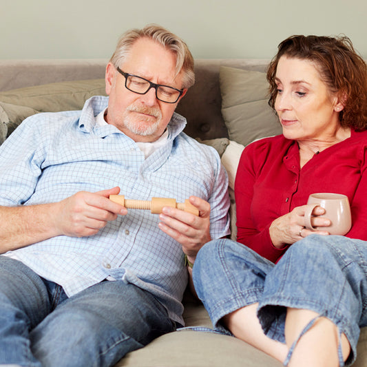 We suggest helping by guiding people through single-step activities, and it can be helpful to reinforce with demonstrations. Introduce sensory experiences, like listening to music or soothing restless hands with the Tactile Turn.